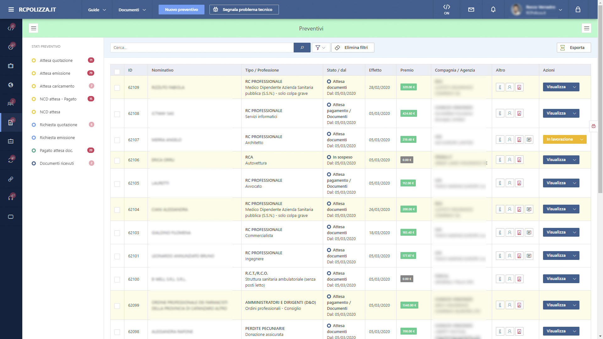 Il software gestionale di RCPolizza.it permette a tutti gli intermediari assicurativi A, B ed E in cerca di una soluzione semplice ma affidabile di poter contare su una piattaforma avanzata e completa che permette di valorizzare il tempo dedicato ai propri assicurati e di annullare le incombenze burocratiche.