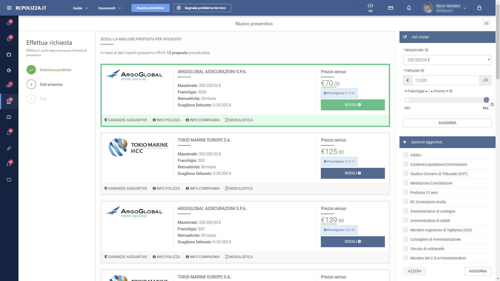 All'interno del gestionale assicurativo sono disponibili funzionalità e strumenti evoluti che garantiscono ad Agenti, Broker e Intermediari di poter svolgere la loro professione in totale sicurezza e comodità di utilizzo attraverso processi chiari e trasparenti, a partire dal calcolo delle provvigioni, che viene elaborato dal sistema prima della sottoscrizione della polizza e mostrato in calce ad ogni preventivo.